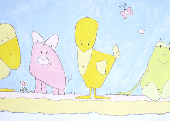 Entwicklung von Motiven und Dessins für Tapeten und Wandgestaltung, Kindertextilien, Illustrationen Kindererstlesebücher mit neuer kreativer Idee/Inspiration