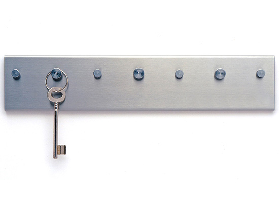 Das schlichte Schlüsselbrett „Rendel“...... hier kann nicht verloren gehen! Ein abgekantetes Edelstahlblech, gebürstet. Rendelschrauben halten alle Kleinigkeiten gut fest, die sich so gerne suchen lassen.